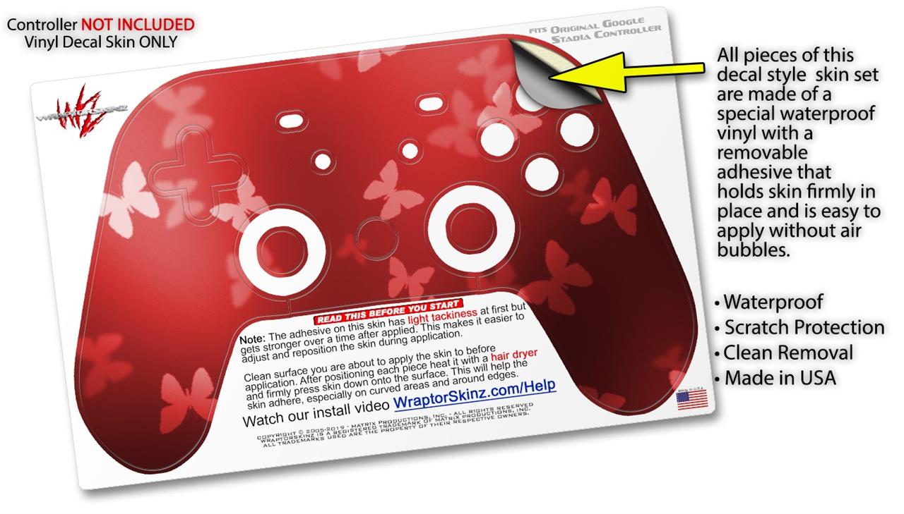 Skin Decal Wrap works with Original Google Stadia Controller Bokeh Butterflies Red Skin Only CONTROLLER NOT INCLUDED