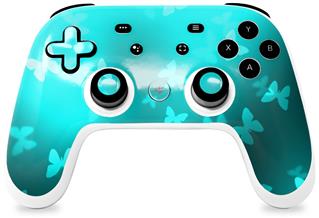 Skin Decal Wrap works with Original Google Stadia Controller Bokeh Butterflies Neon Teal Skin Only CONTROLLER NOT INCLUDED