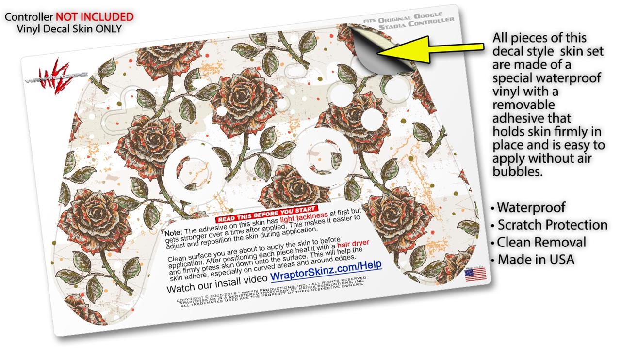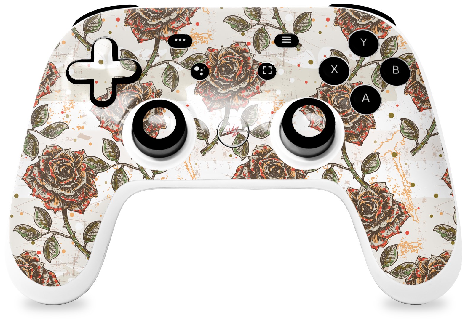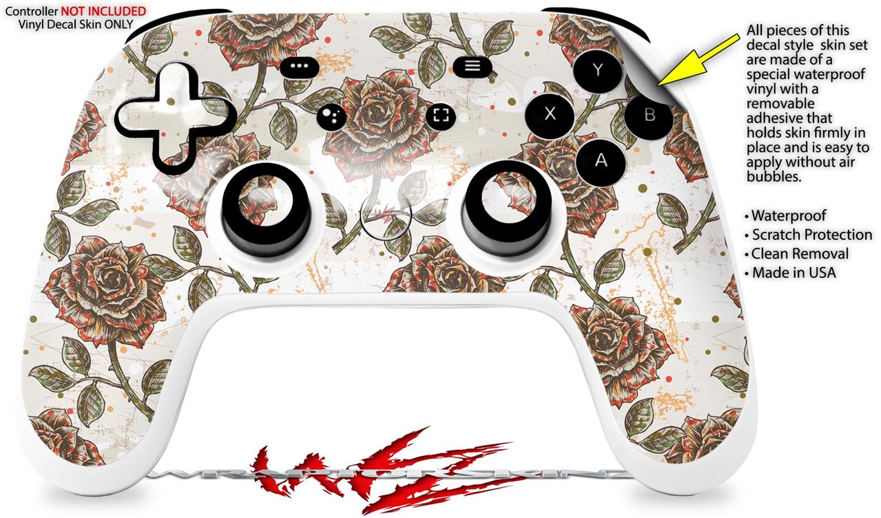 Skin Decal Wrap works with Original Google Stadia Controller Flowers Pattern Roses 20 Skin Only CONTROLLER NOT INCLUDED