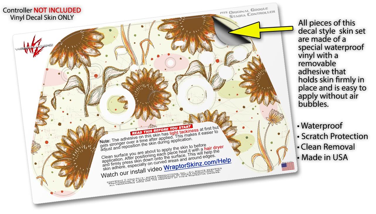 Skin Decal Wrap works with Original Google Stadia Controller Flowers Pattern 19 Skin Only CONTROLLER NOT INCLUDED