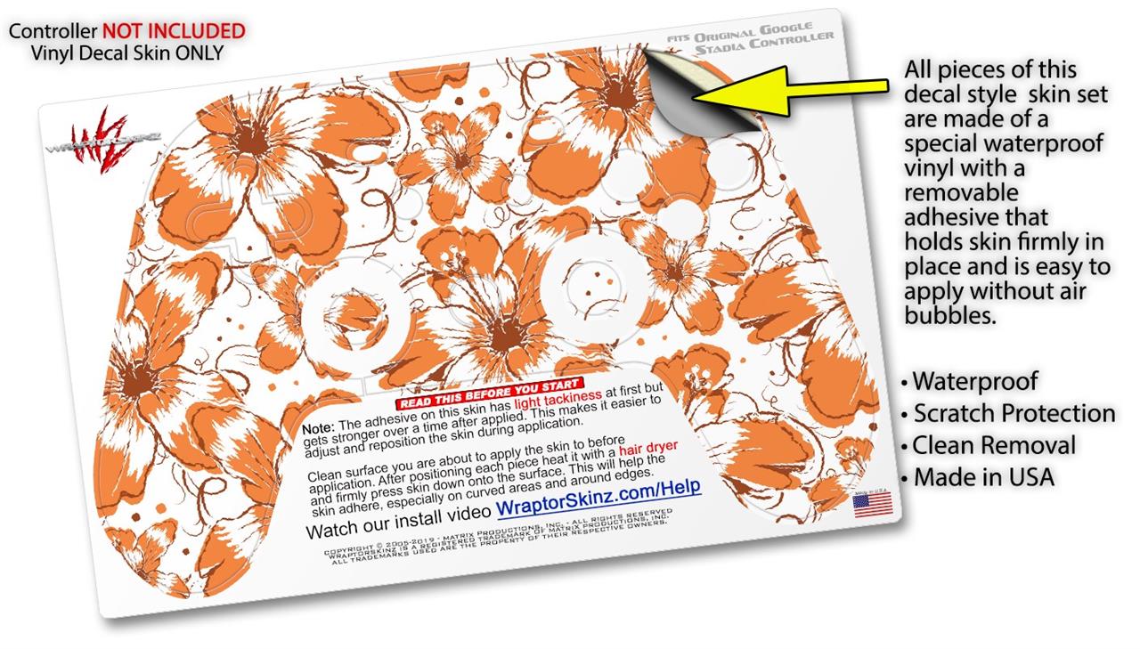 This product is in no way affiliated with or endorsed by Google. WraptorSkinz® skin wraps work with the Original Google Stadia version 1 Controller. Printed using superb photo quality designs and vibrant colors printed with special fade resistant inks that last even in direct sun for years. WraptorSkinz are a composite of two layers of commercial grade materials. The bottom layer is a soft, flexible vinyl with a special removable adhesive that is easily positioned, applied without air bubbles. Next, we print the bottom layer with UV protected, fade resistant inks that deliver superb photo quality designs in vibrant colors. Finally, we bond a professional grade laminate over the entire skin adding a glossy protective finish.
