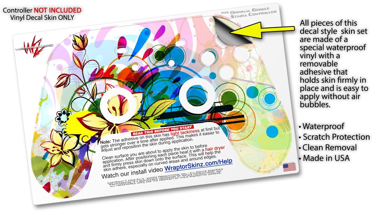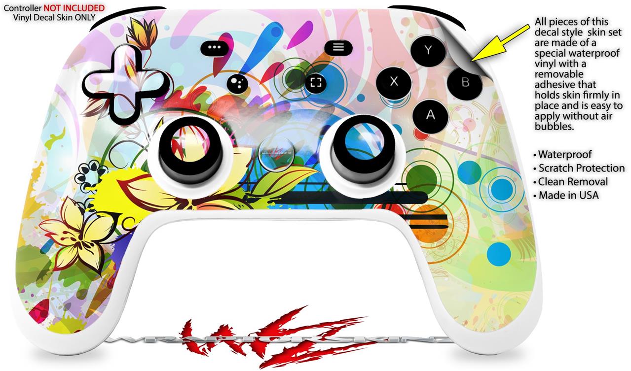 Skin Decal Wrap works with Original Google Stadia Controller Floral Splash Skin Only CONTROLLER NOT INCLUDED