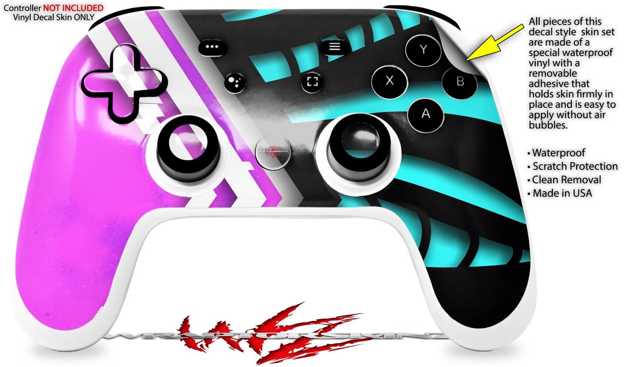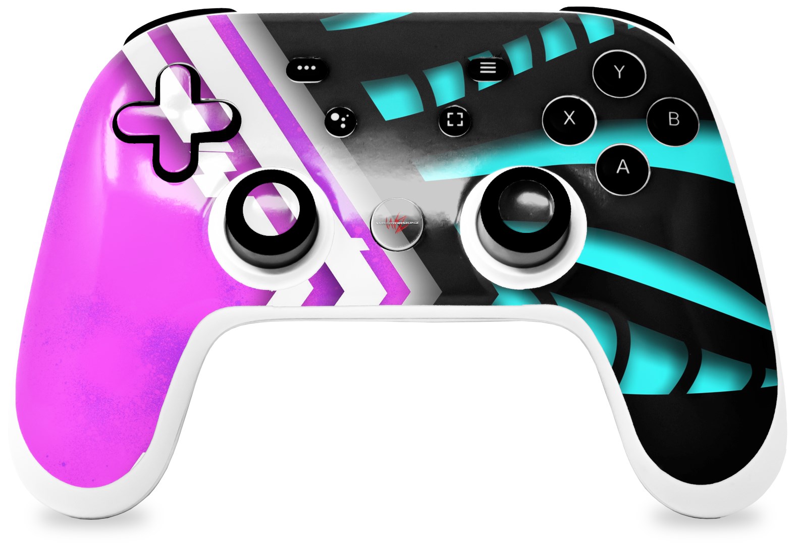 Skin Decal Wrap works with Original Google Stadia Controller Black Waves Neon Teal Hot Pink Skin Only CONTROLLER NOT INCLUDED
