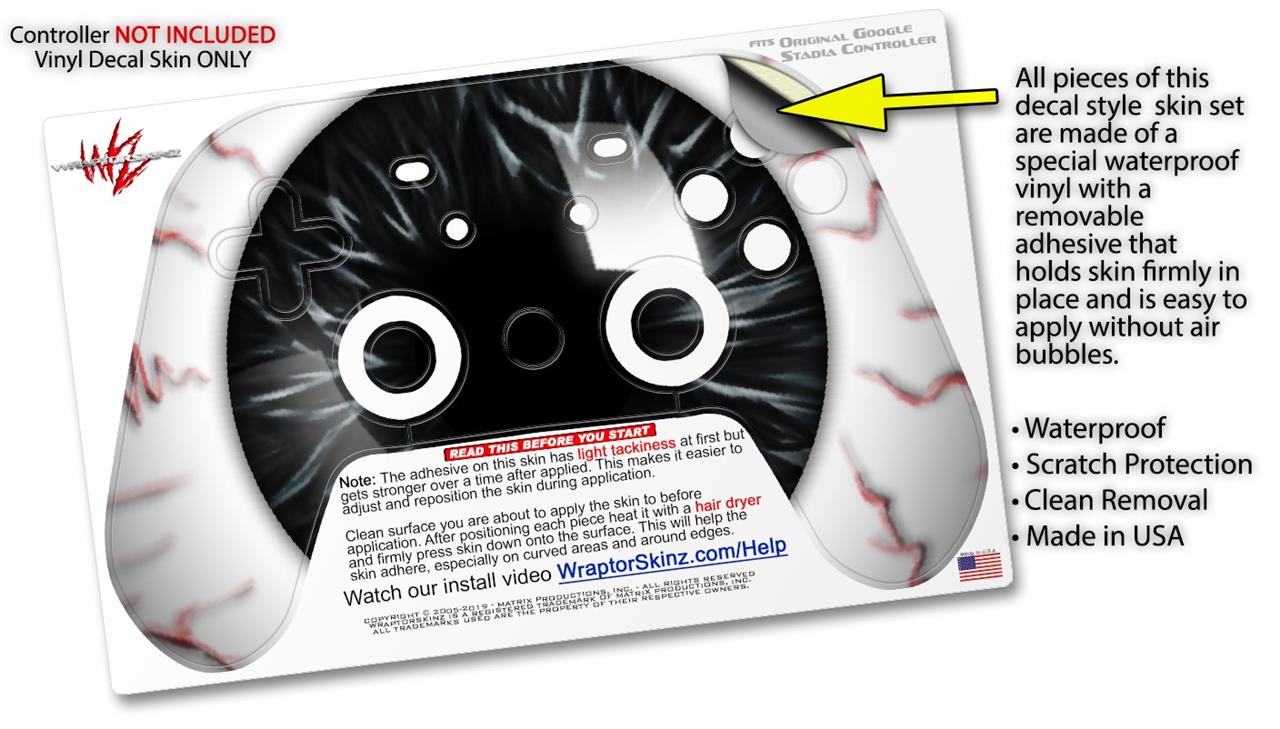 Skin Decal Wrap works with Original Google Stadia Controller Eyeball Black Skin Only CONTROLLER NOT INCLUDED