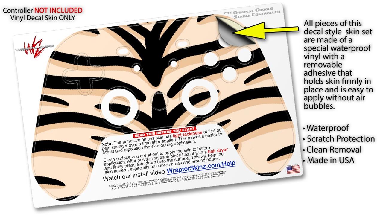 Skin Decal Wrap works with Original Google Stadia Controller White Tiger Skin Only CONTROLLER NOT INCLUDED