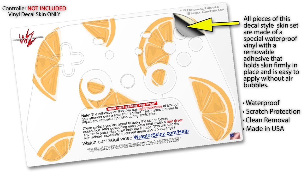 Skin Decal Wrap works with Original Google Stadia Controller Oranges Skin Only CONTROLLER NOT INCLUDED