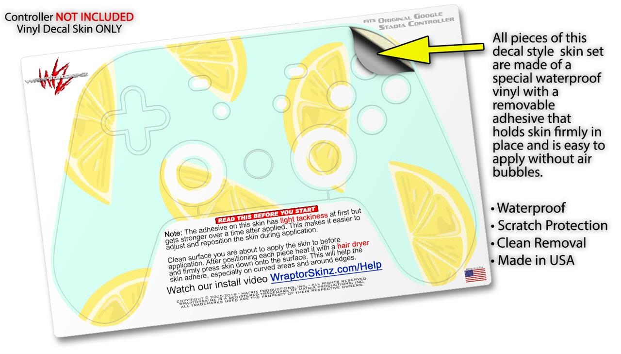 Skin Decal Wrap works with Original Google Stadia Controller Lemons Blue Skin Only CONTROLLER NOT INCLUDED