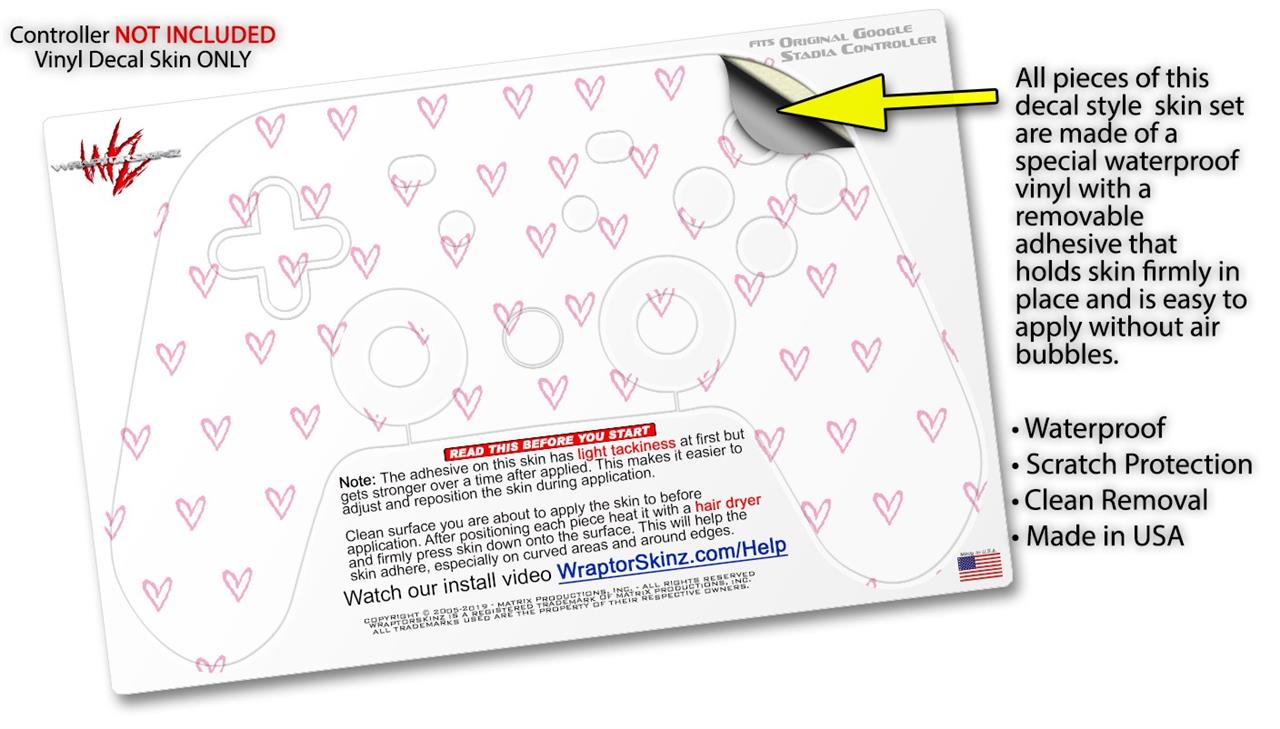 Skin Decal Wrap works with Original Google Stadia Controller Hearts Pink Skin Only CONTROLLER NOT INCLUDED
