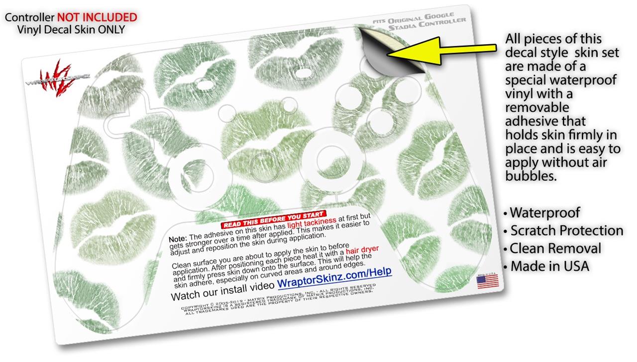 Skin Decal Wrap works with Original Google Stadia Controller Green Lips Skin Only CONTROLLER NOT INCLUDED