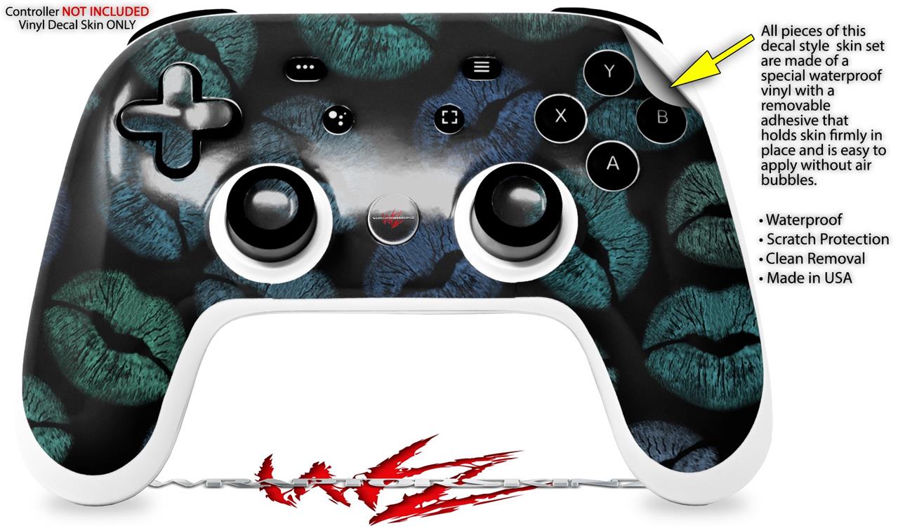 Skin Decal Wrap works with Original Google Stadia Controller Blue Green And Black Lips Skin Only CONTROLLER NOT INCLUDED