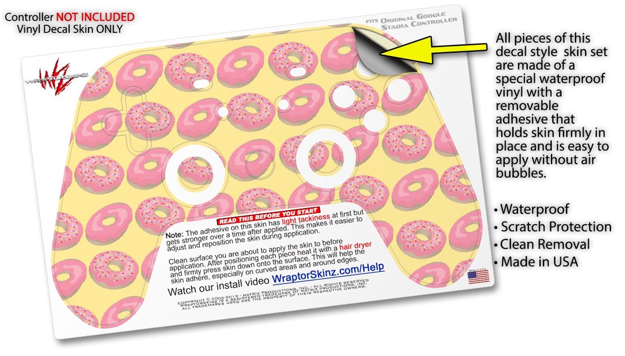 Skin Decal Wrap works with Original Google Stadia Controller Donuts Yellow Skin Only CONTROLLER NOT INCLUDED