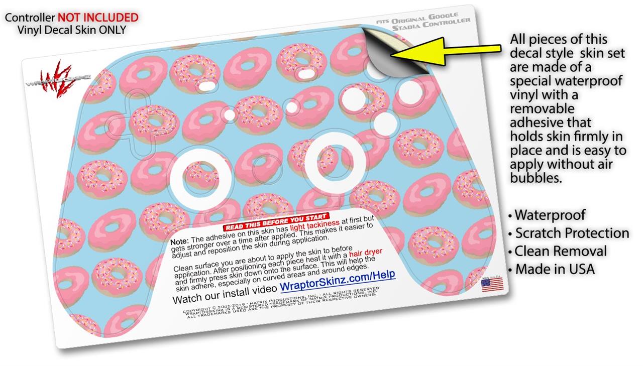 This product is in no way affiliated with or endorsed by Google. WraptorSkinz® skin wraps work with the Original Google Stadia version 1 Controller. Printed using superb photo quality designs and vibrant colors printed with special fade resistant inks that last even in direct sun for years. WraptorSkinz are a composite of two layers of commercial grade materials. The bottom layer is a soft, flexible vinyl with a special removable adhesive that is easily positioned, applied without air bubbles. Next, we print the bottom layer with UV protected, fade resistant inks that deliver superb photo quality designs in vibrant colors. Finally, we bond a professional grade laminate over the entire skin adding a glossy protective finish.
