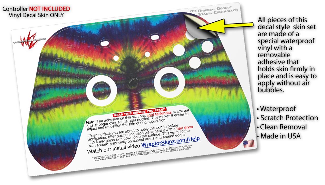 Skin Decal Wrap works with Original Google Stadia Controller Tie Dye Dragonfly Skin Only CONTROLLER NOT INCLUDED