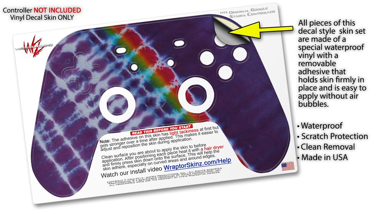Skin Decal Wrap works with Original Google Stadia Controller Tie Dye Alls Purple Skin Only CONTROLLER NOT INCLUDED