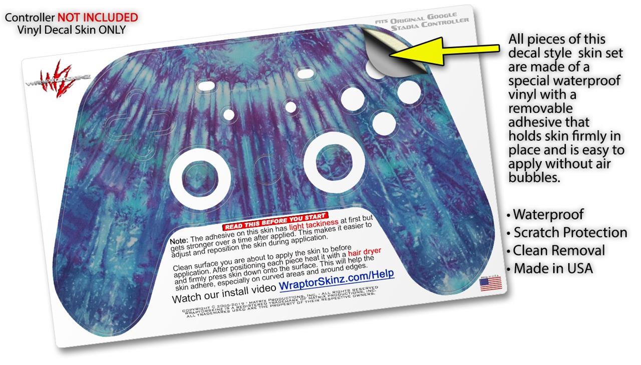 Skin Decal Wrap works with Original Google Stadia Controller Tie Dye Blue Shale Skin Only CONTROLLER NOT INCLUDED