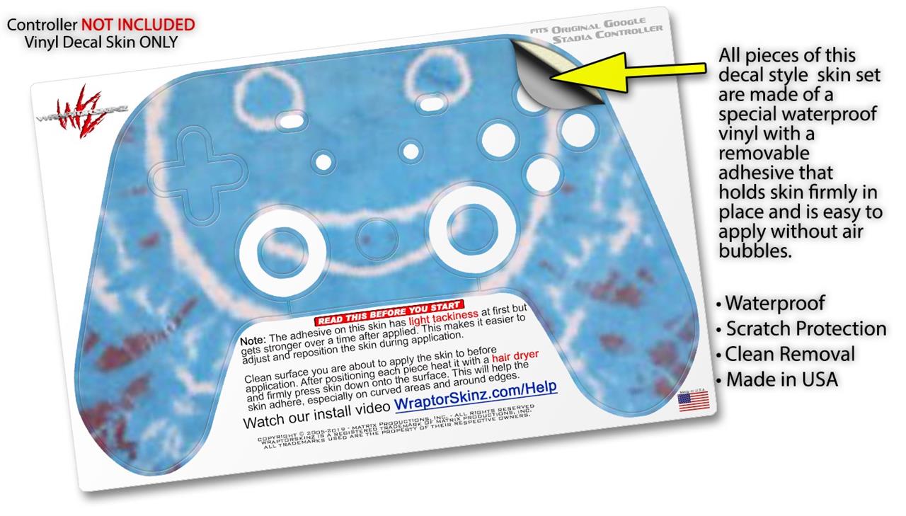 This product is in no way affiliated with or endorsed by Google. WraptorSkinz® skin wraps work with the Original Google Stadia version 1 Controller. Printed using superb photo quality designs and vibrant colors printed with special fade resistant inks that last even in direct sun for years. WraptorSkinz are a composite of two layers of commercial grade materials. The bottom layer is a soft, flexible vinyl with a special removable adhesive that is easily positioned, applied without air bubbles. Next, we print the bottom layer with UV protected, fade resistant inks that deliver superb photo quality designs in vibrant colors. Finally, we bond a professional grade laminate over the entire skin adding a glossy protective finish.