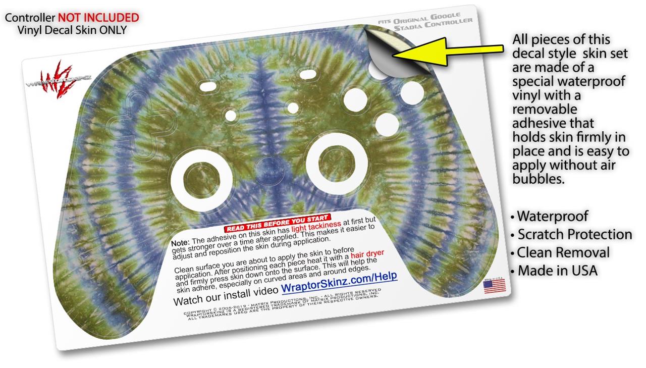 This product is in no way affiliated with or endorsed by Google. WraptorSkinz® skin wraps work with the Original Google Stadia version 1 Controller. Printed using superb photo quality designs and vibrant colors printed with special fade resistant inks that last even in direct sun for years. WraptorSkinz are a composite of two layers of commercial grade materials. The bottom layer is a soft, flexible vinyl with a special removable adhesive that is easily positioned, applied without air bubbles. Next, we print the bottom layer with UV protected, fade resistant inks that deliver superb photo quality designs in vibrant colors. Finally, we bond a professional grade laminate over the entire skin adding a glossy protective finish.