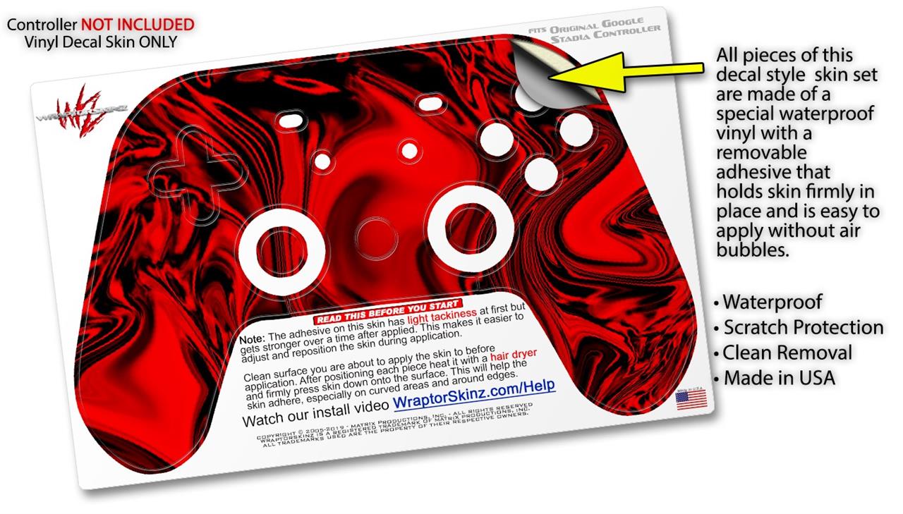 This product is in no way affiliated with or endorsed by Google. WraptorSkinz® skin wraps work with the Original Google Stadia version 1 Controller. Printed using superb photo quality designs and vibrant colors printed with special fade resistant inks that last even in direct sun for years. WraptorSkinz are a composite of two layers of commercial grade materials. The bottom layer is a soft, flexible vinyl with a special removable adhesive that is easily positioned, applied without air bubbles. Next, we print the bottom layer with UV protected, fade resistant inks that deliver superb photo quality designs in vibrant colors. Finally, we bond a professional grade laminate over the entire skin adding a glossy protective finish.