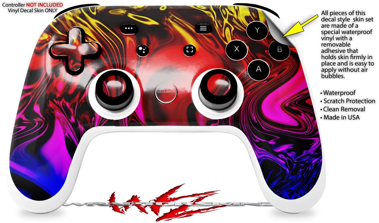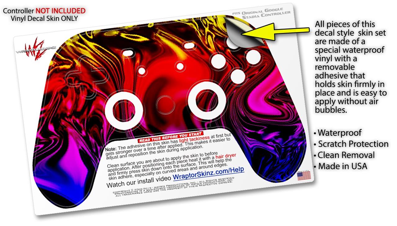 This product is in no way affiliated with or endorsed by Google. WraptorSkinz® skin wraps work with the Original Google Stadia version 1 Controller. Printed using superb photo quality designs and vibrant colors printed with special fade resistant inks that last even in direct sun for years. WraptorSkinz are a composite of two layers of commercial grade materials. The bottom layer is a soft, flexible vinyl with a special removable adhesive that is easily positioned, applied without air bubbles. Next, we print the bottom layer with UV protected, fade resistant inks that deliver superb photo quality designs in vibrant colors. Finally, we bond a professional grade laminate over the entire skin adding a glossy protective finish.