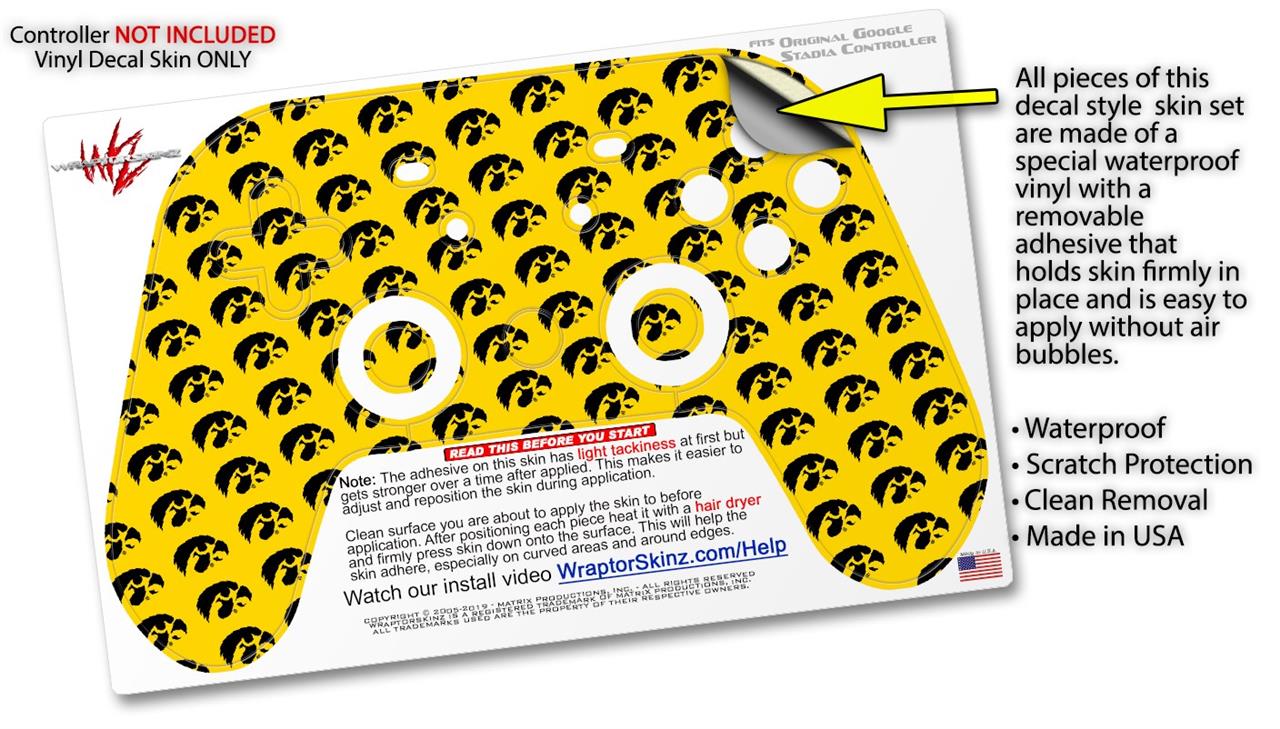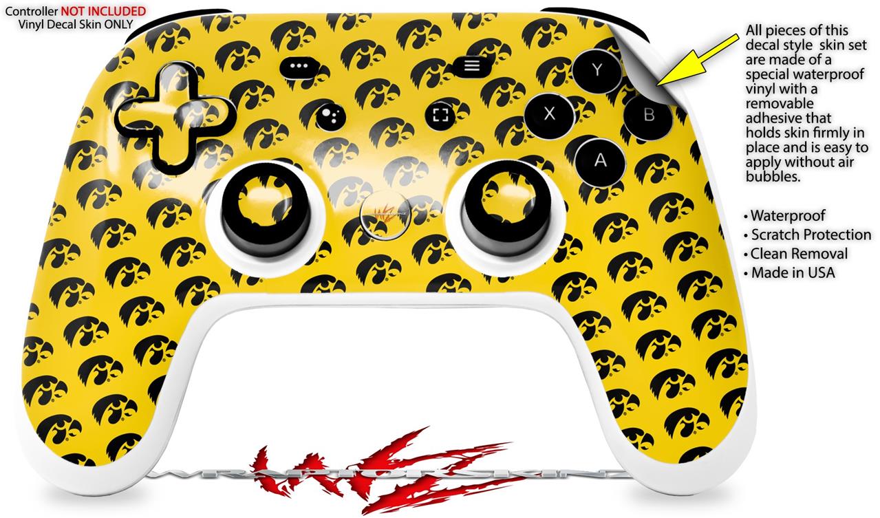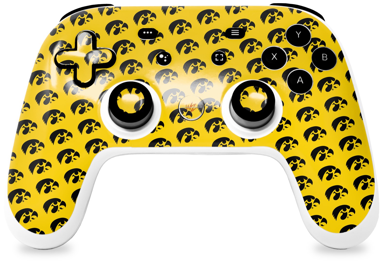 Skin Decal Wrap works with Original Google Stadia Controller Iowa Hawkeyes Tigerhawk Tiled 06 Black on Gold Skin Only CONTROLLER NOT INCLUDED