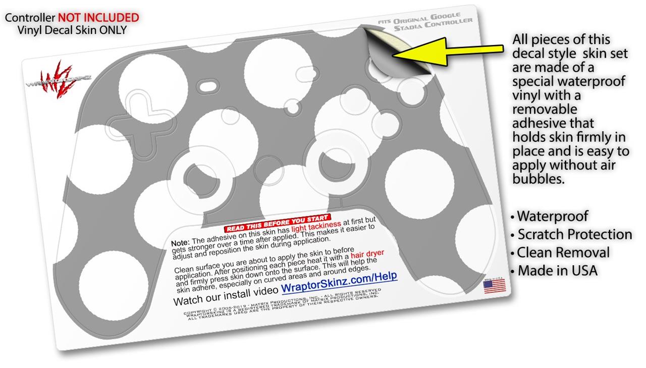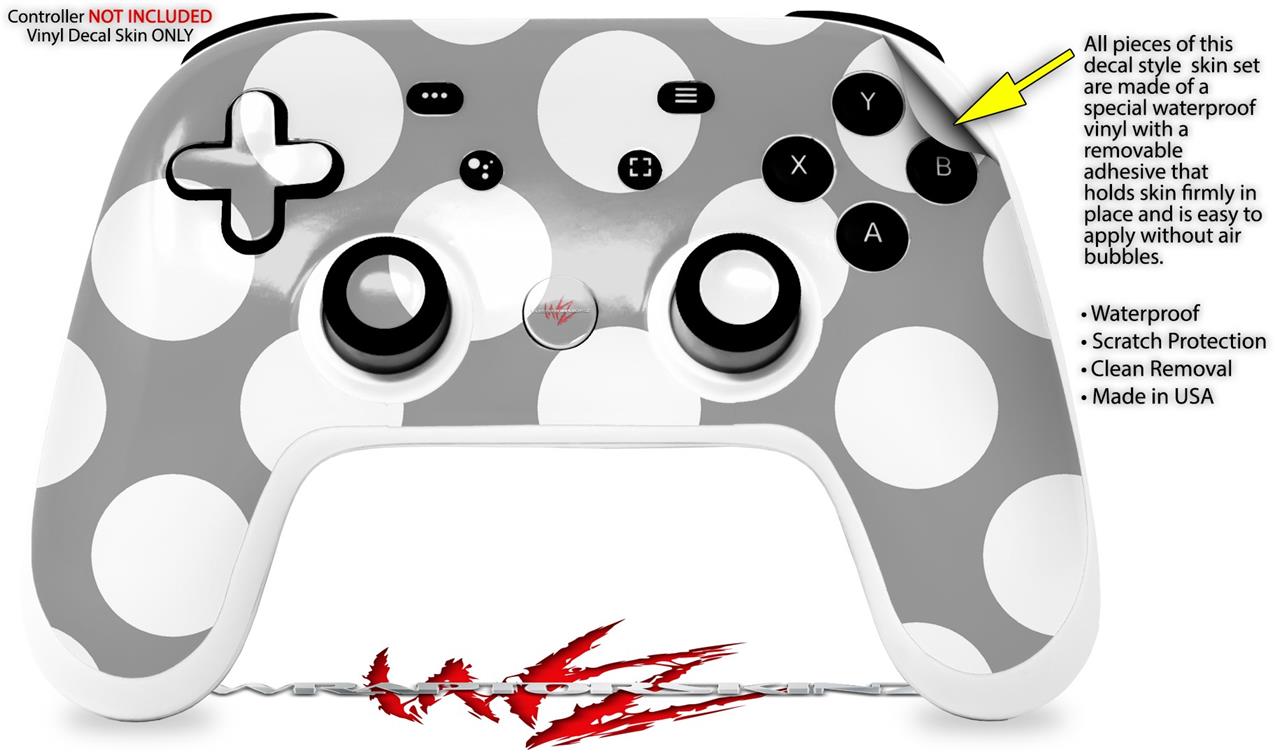Skin Decal Wrap works with Original Google Stadia Controller Kearas Polka Dots Whtie On Gray Skin Only CONTROLLER NOT INCLUDED