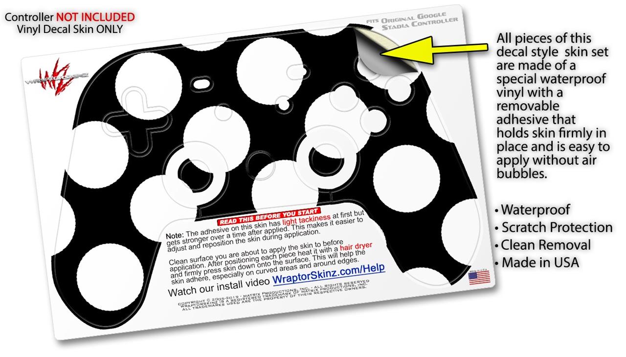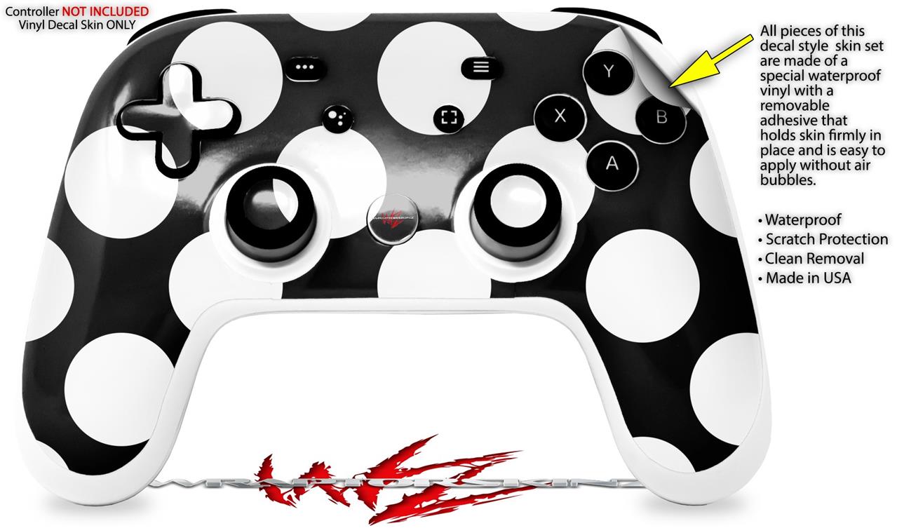 Skin Decal Wrap works with Original Google Stadia Controller Kearas Polka Dots White On Black Skin Only CONTROLLER NOT INCLUDED