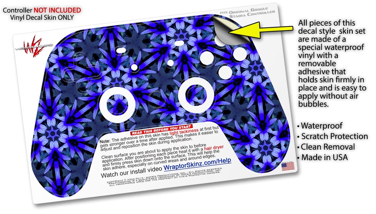 This product is in no way affiliated with or endorsed by Google. WraptorSkinz® skin wraps work with the Original Google Stadia version 1 Controller. Printed using superb photo quality designs and vibrant colors printed with special fade resistant inks that last even in direct sun for years. WraptorSkinz are a composite of two layers of commercial grade materials. The bottom layer is a soft, flexible vinyl with a special removable adhesive that is easily positioned, applied without air bubbles. Next, we print the bottom layer with UV protected, fade resistant inks that deliver superb photo quality designs in vibrant colors. Finally, we bond a professional grade laminate over the entire skin adding a glossy protective finish.