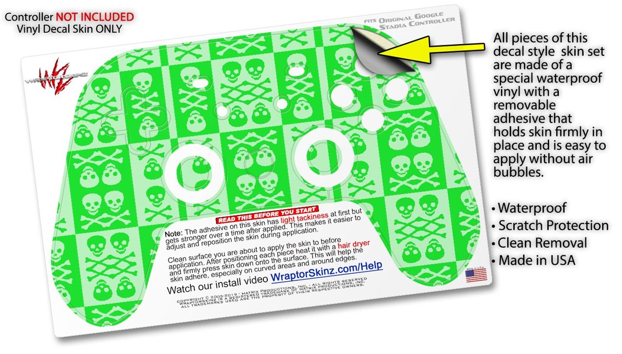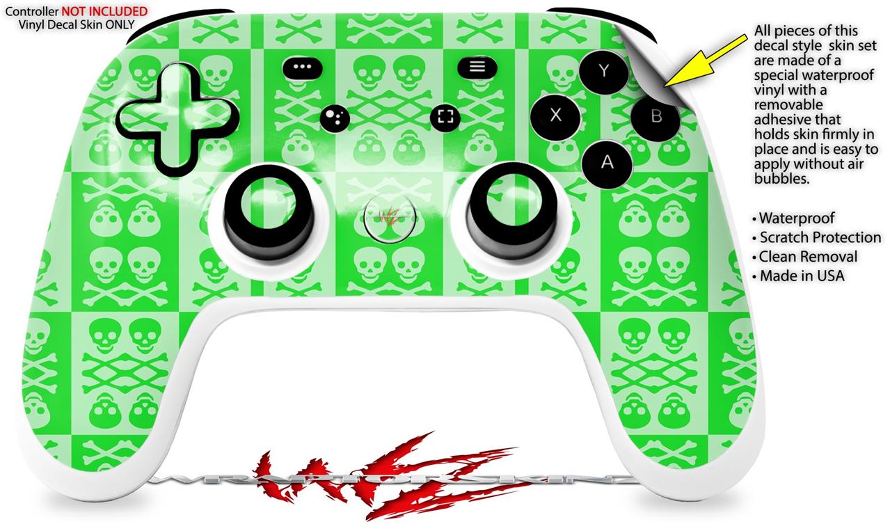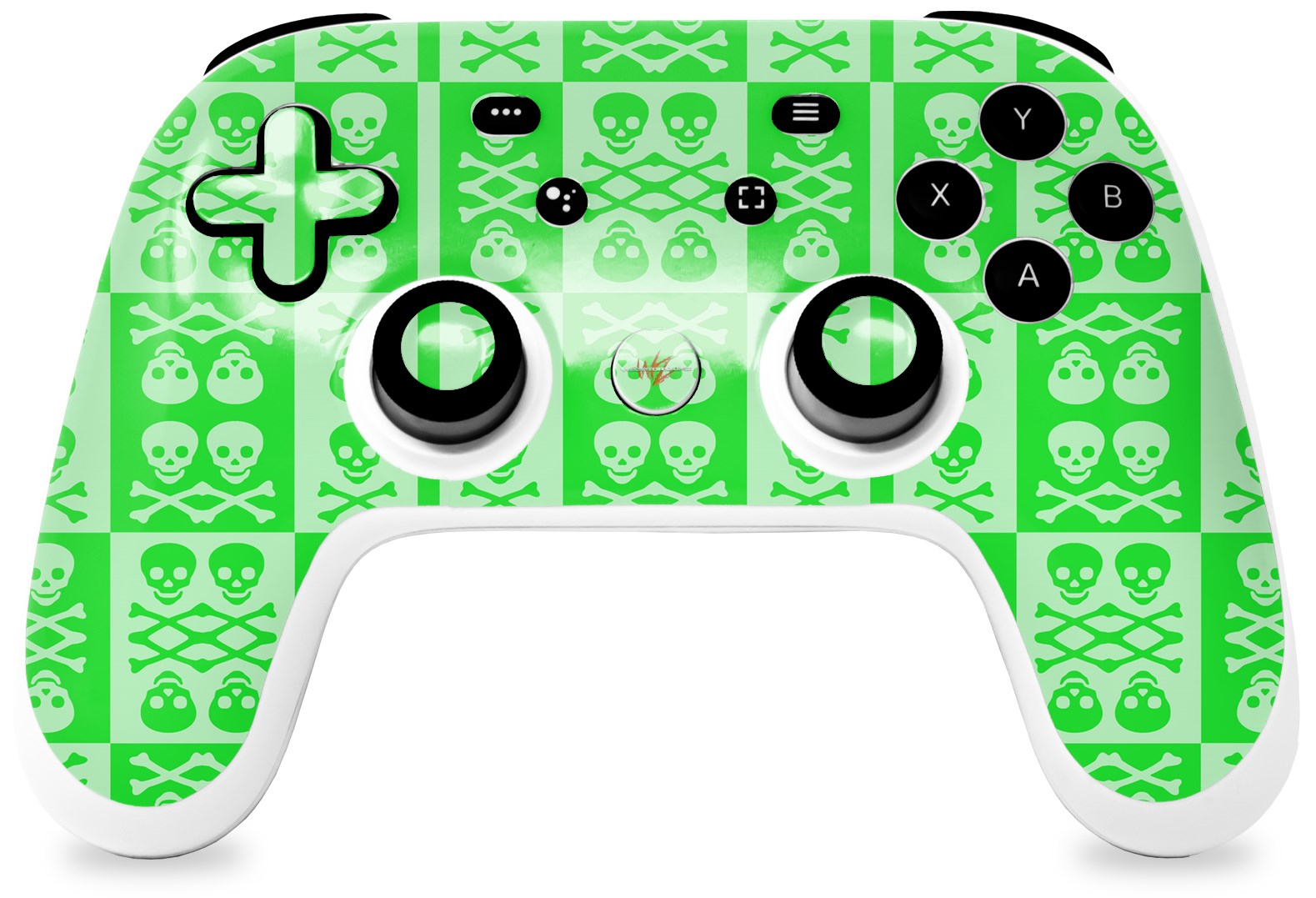 Skin Decal Wrap works with Original Google Stadia Controller Skull And Crossbones Pattern Green Skin Only CONTROLLER NOT INCLUDED