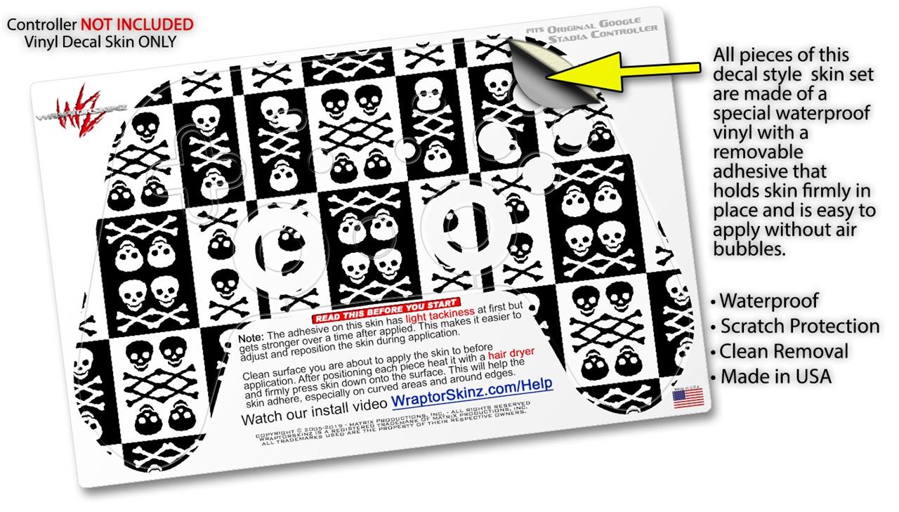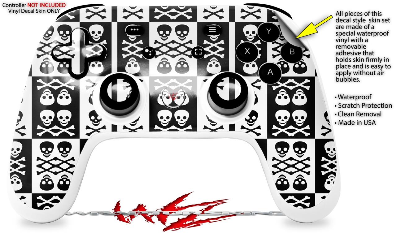Skin Decal Wrap works with Original Google Stadia Controller Skull And Crossbones Pattern Bw Skin Only CONTROLLER NOT INCLUDED