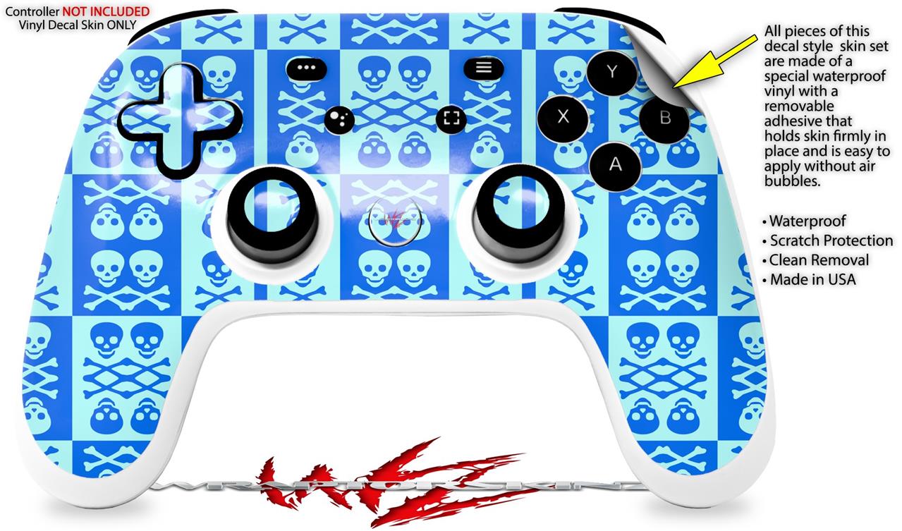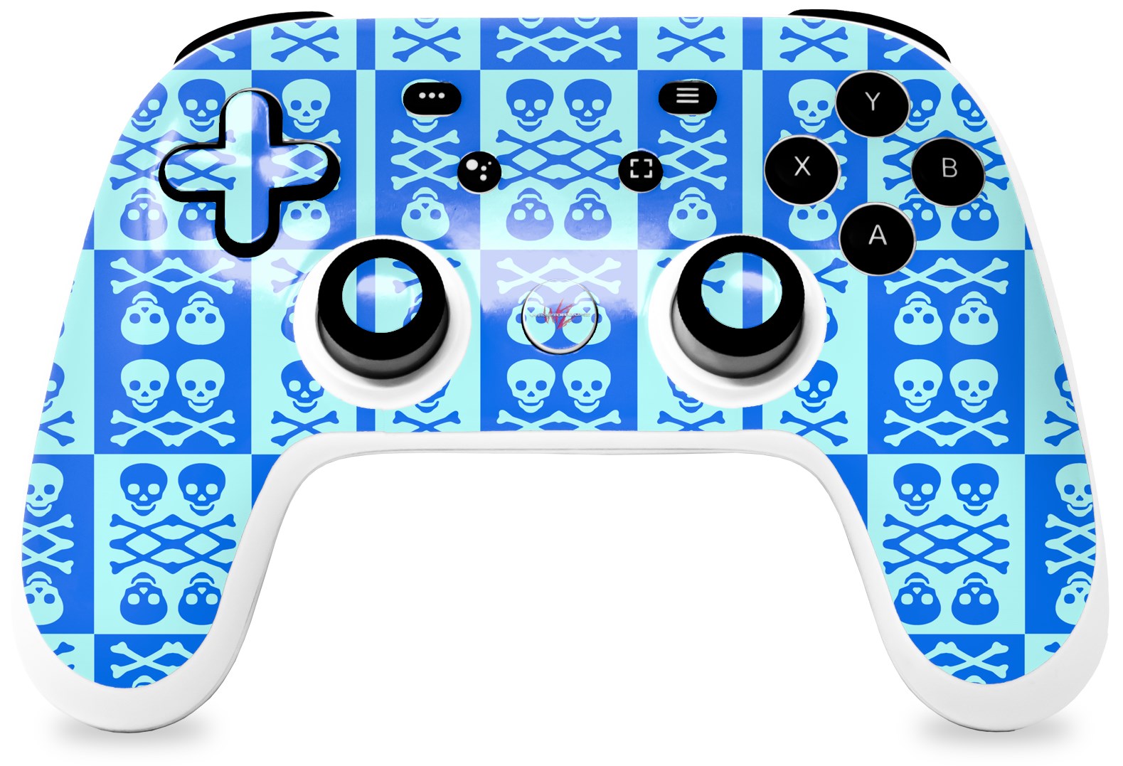 Skin Decal Wrap works with Original Google Stadia Controller Skull And Crossbones Pattern Blue Skin Only CONTROLLER NOT INCLUDED