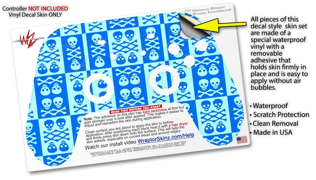 This product is in no way affiliated with or endorsed by Google. WraptorSkinz® skin wraps work with the Original Google Stadia version 1 Controller. Printed using superb photo quality designs and vibrant colors printed with special fade resistant inks that last even in direct sun for years. WraptorSkinz are a composite of two layers of commercial grade materials. The bottom layer is a soft, flexible vinyl with a special removable adhesive that is easily positioned, applied without air bubbles. Next, we print the bottom layer with UV protected, fade resistant inks that deliver superb photo quality designs in vibrant colors. Finally, we bond a professional grade laminate over the entire skin adding a glossy protective finish.