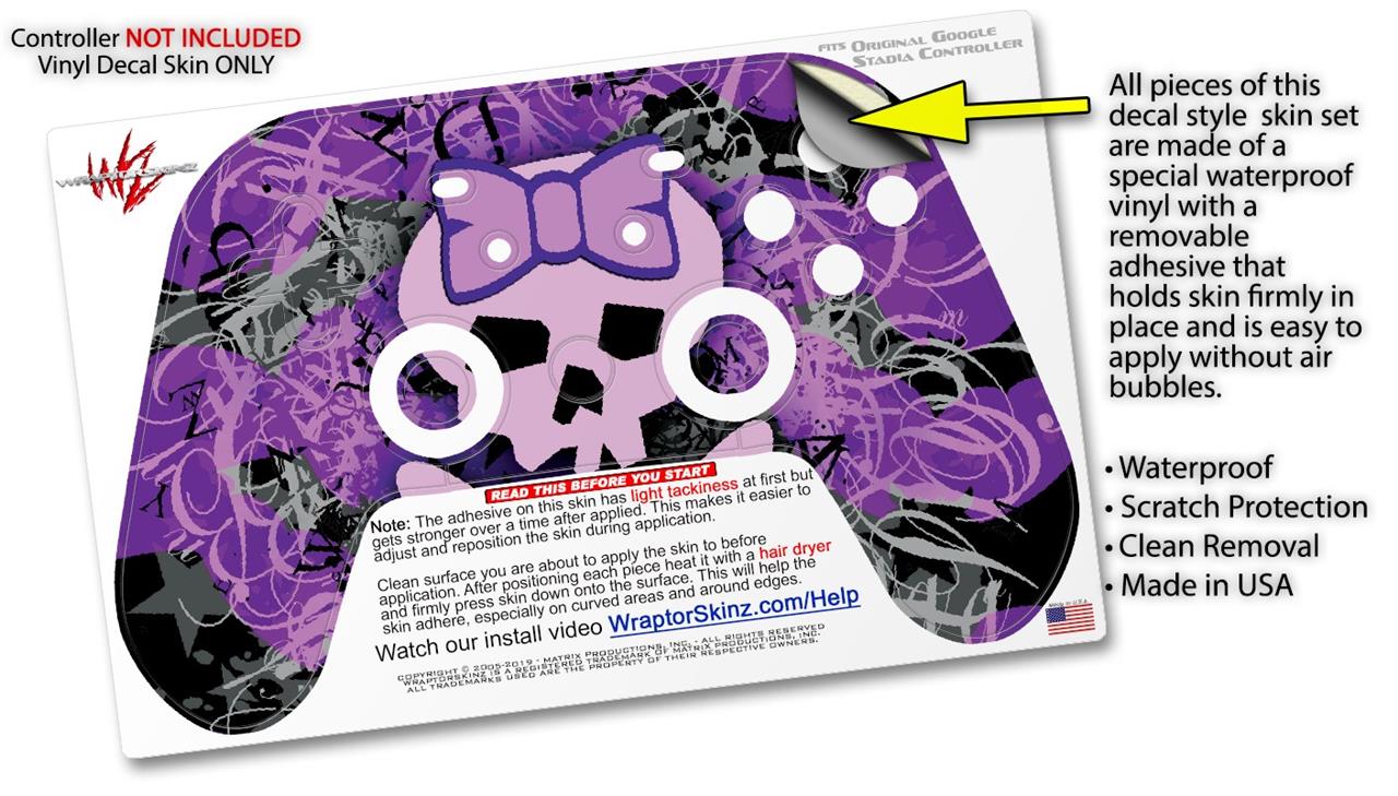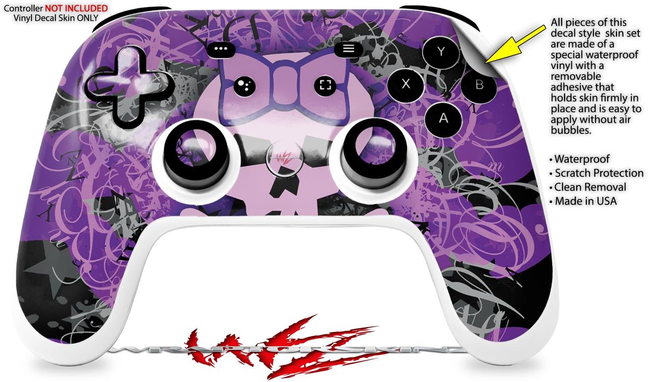 Skin Decal Wrap works with Original Google Stadia Controller Purple Girly Skull Skin Only CONTROLLER NOT INCLUDED