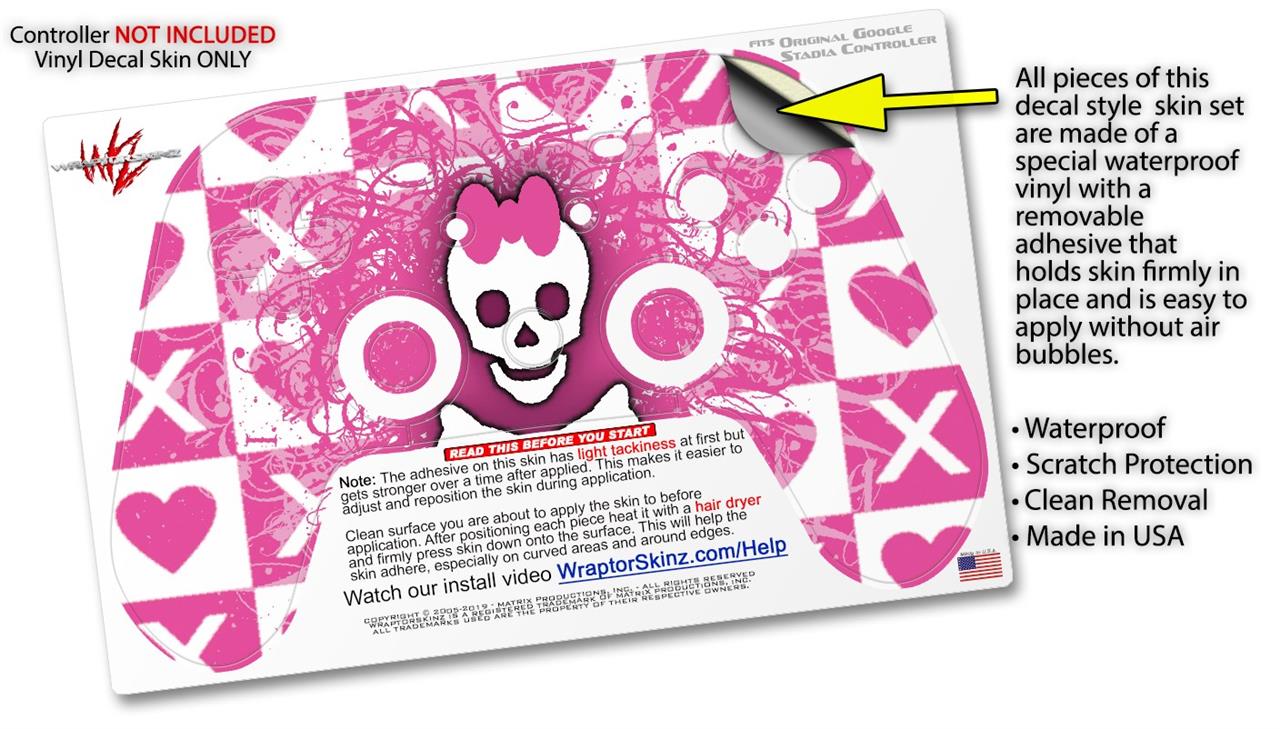 This product is in no way affiliated with or endorsed by Google. WraptorSkinz® skin wraps work with the Original Google Stadia version 1 Controller. Printed using superb photo quality designs and vibrant colors printed with special fade resistant inks that last even in direct sun for years. WraptorSkinz are a composite of two layers of commercial grade materials. The bottom layer is a soft, flexible vinyl with a special removable adhesive that is easily positioned, applied without air bubbles. Next, we print the bottom layer with UV protected, fade resistant inks that deliver superb photo quality designs in vibrant colors. Finally, we bond a professional grade laminate over the entire skin adding a glossy protective finish.