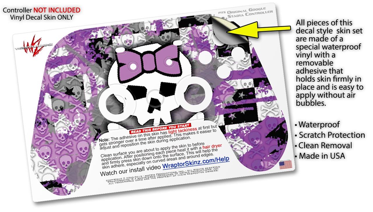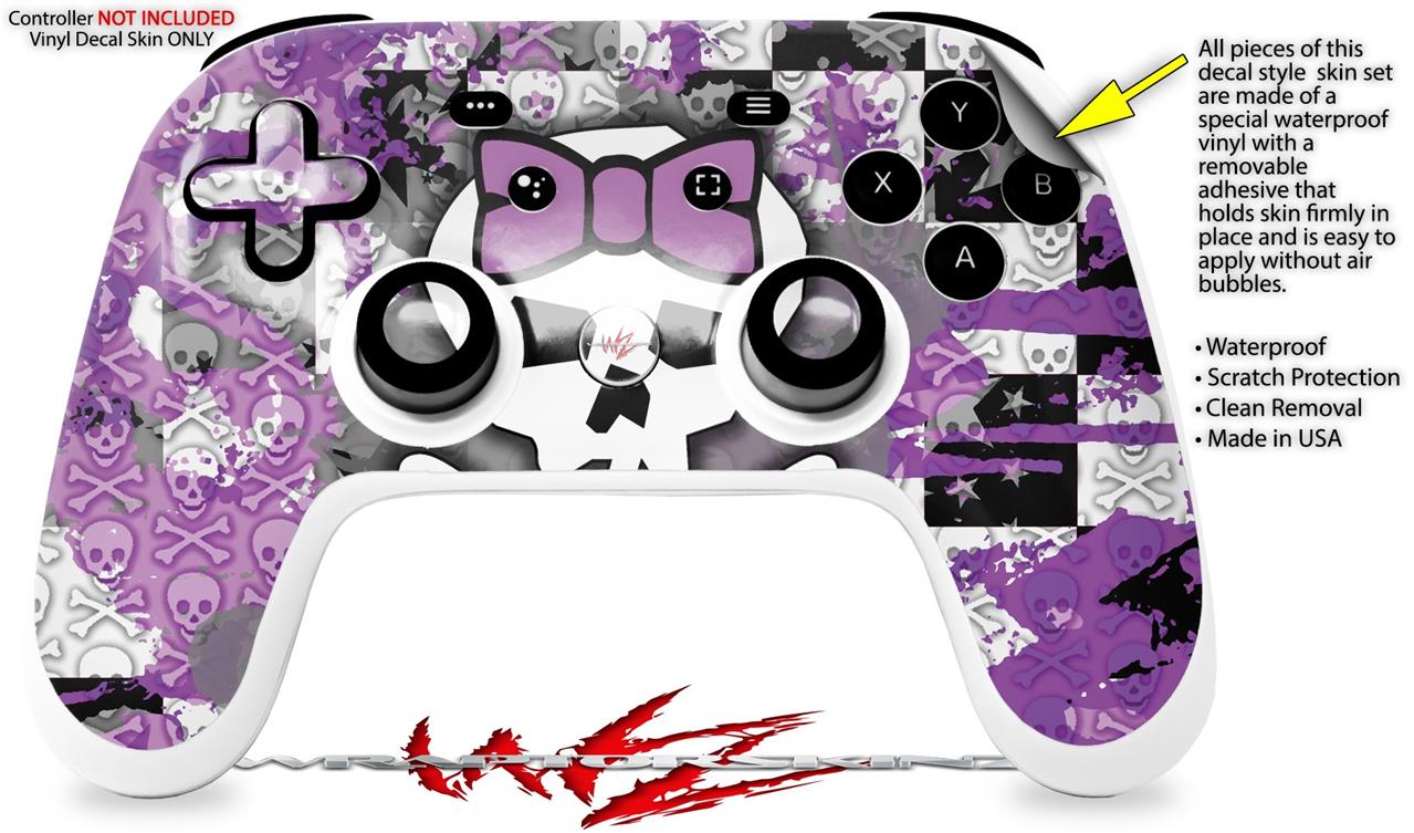 Skin Decal Wrap works with Original Google Stadia Controller Princess Skull Purple Skin Only CONTROLLER NOT INCLUDED