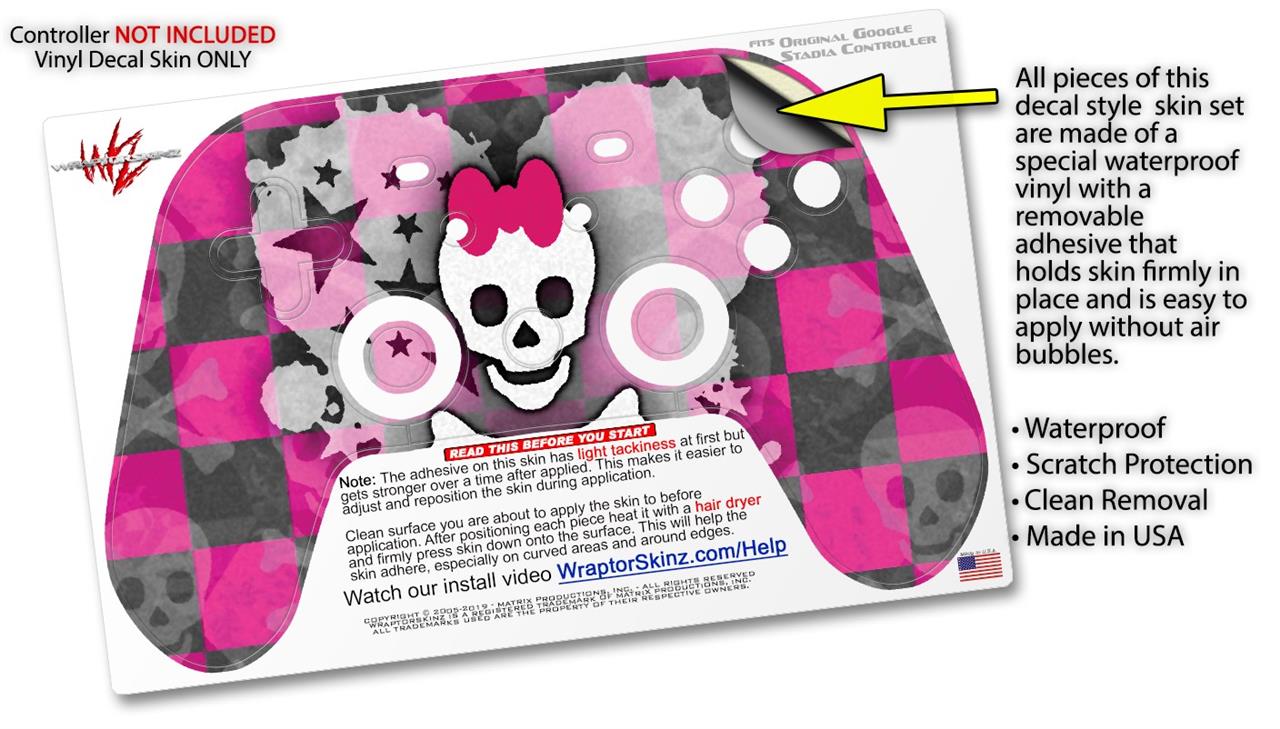 Skin Decal Wrap works with Original Google Stadia Controller Princess Skull Heart Pink Skin Only CONTROLLER NOT INCLUDED