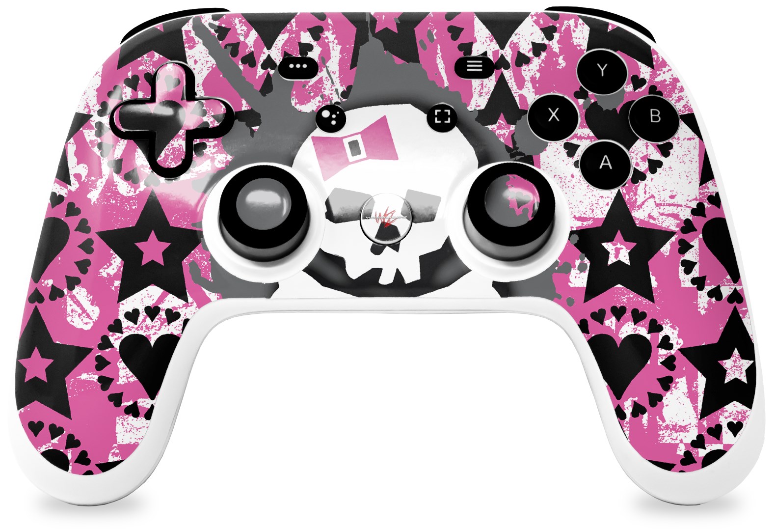 Skin Decal Wrap works with Original Google Stadia Controller Pink Bow Skull Skin Only CONTROLLER NOT INCLUDED