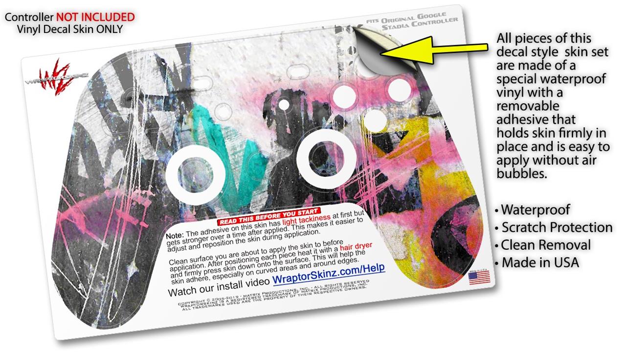 Skin Decal Wrap works with Original Google Stadia Controller Graffiti Grunge Skin Only CONTROLLER NOT INCLUDED