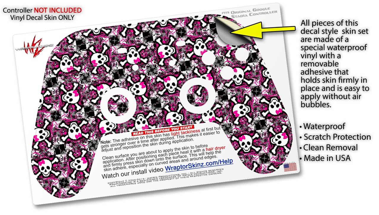 Skin Decal Wrap works with Original Google Stadia Controller Splatter Girly Skull Pink Skin Only CONTROLLER NOT INCLUDED