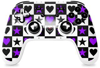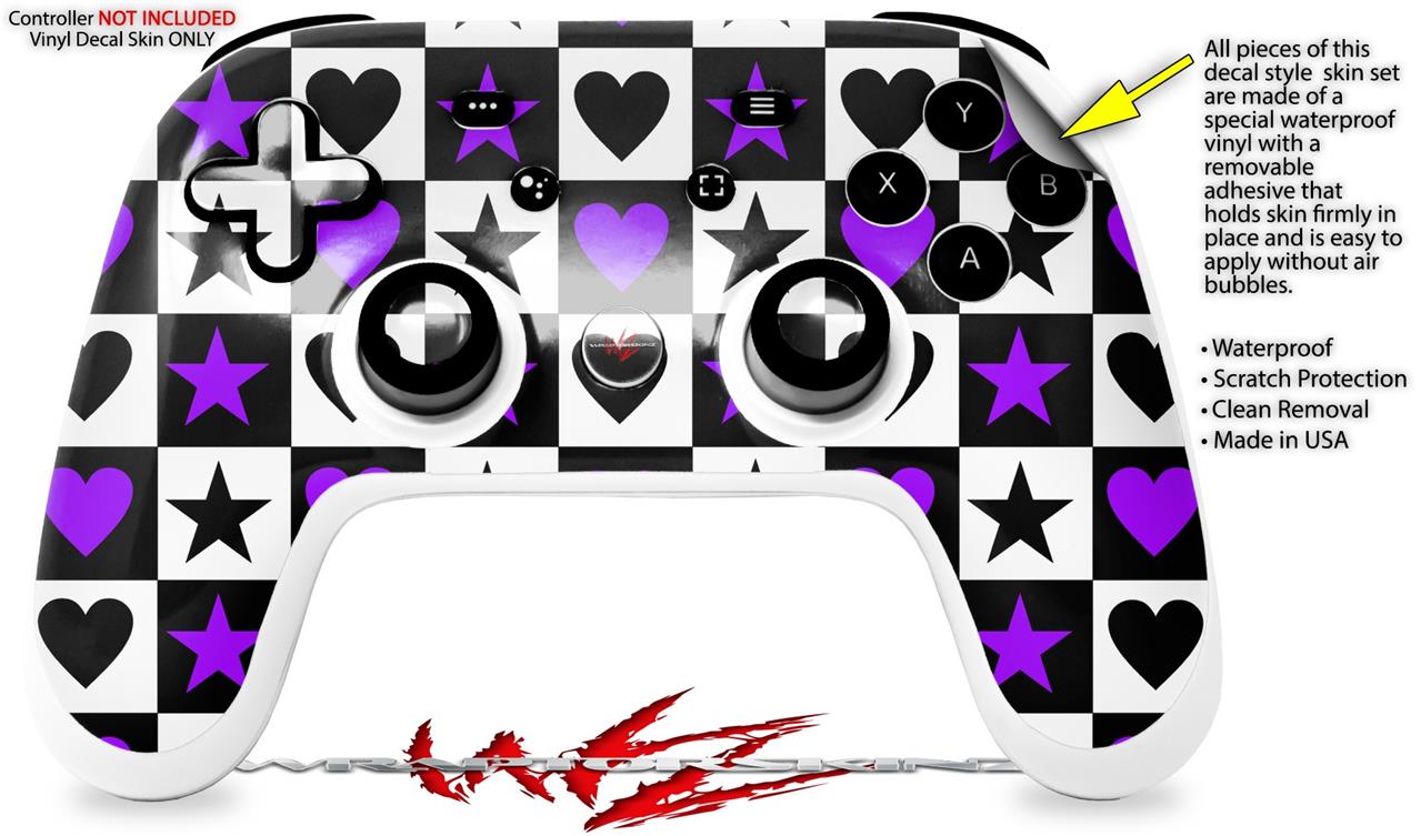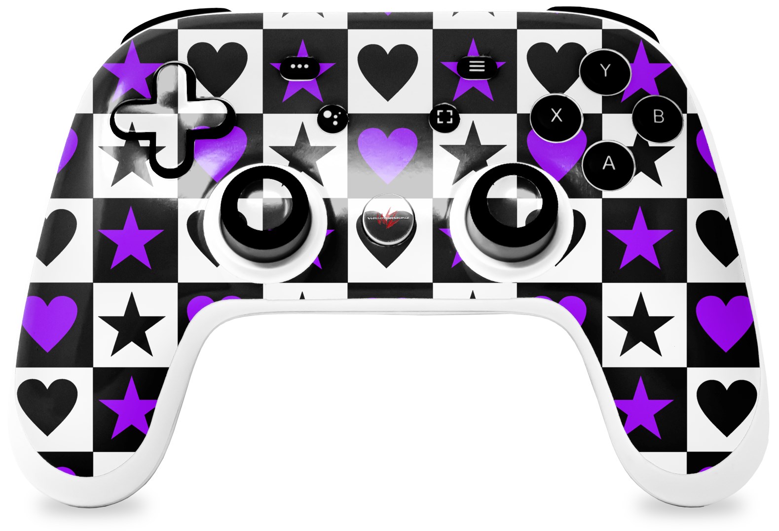 Skin Decal Wrap works with Original Google Stadia Controller Purple Hearts And Stars Skin Only CONTROLLER NOT INCLUDED