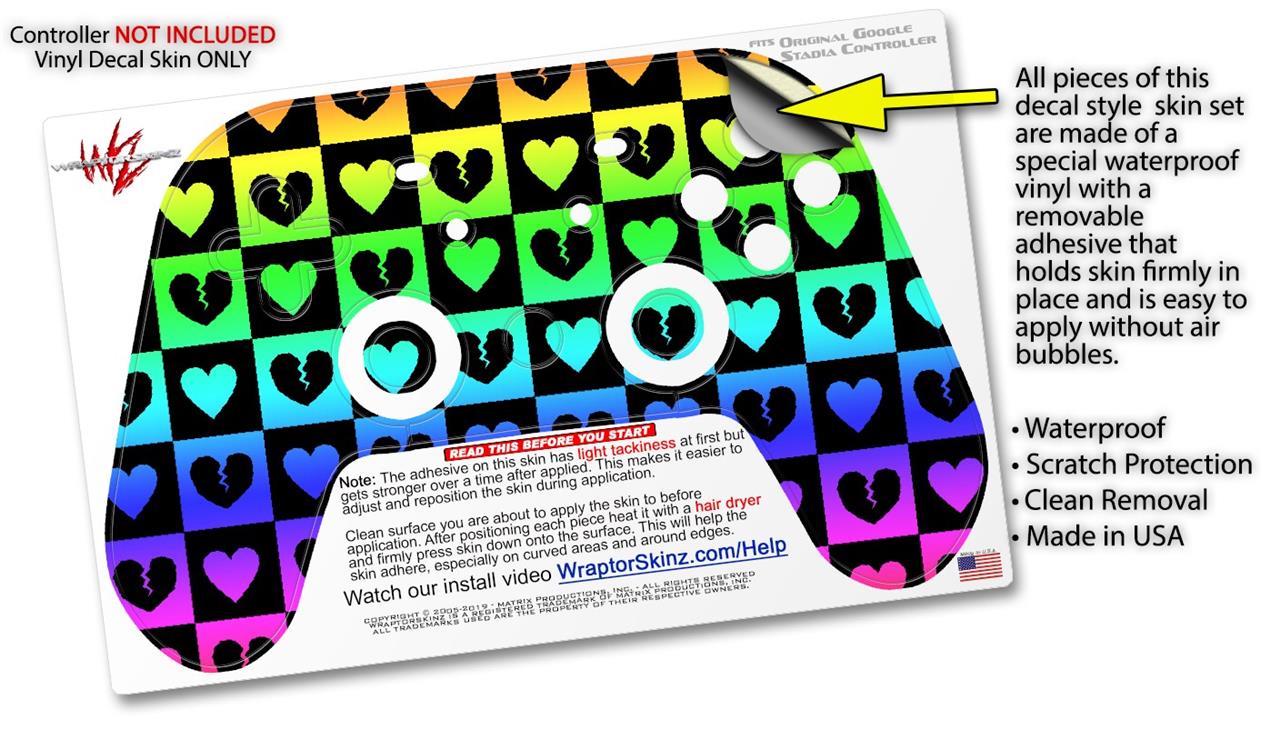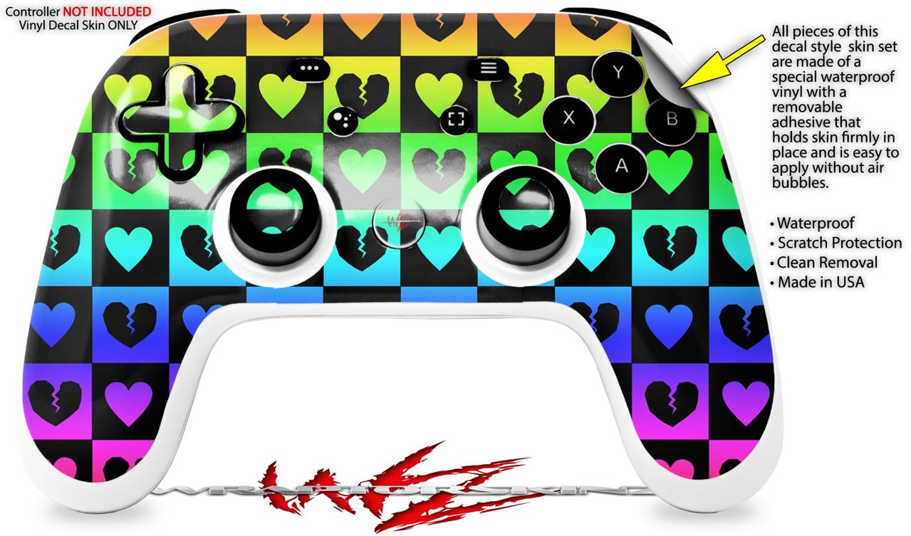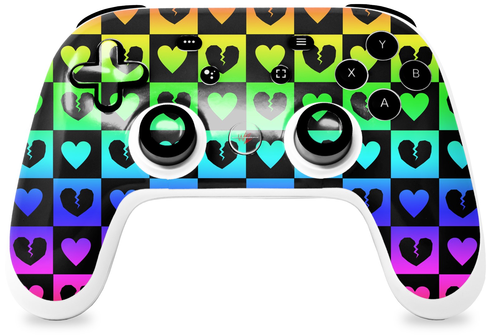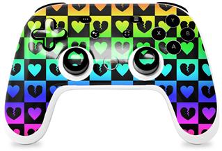 Skin Decal Wrap works with Original Google Stadia Controller Love Heart Checkers Rainbow Skin Only CONTROLLER NOT INCLUDED