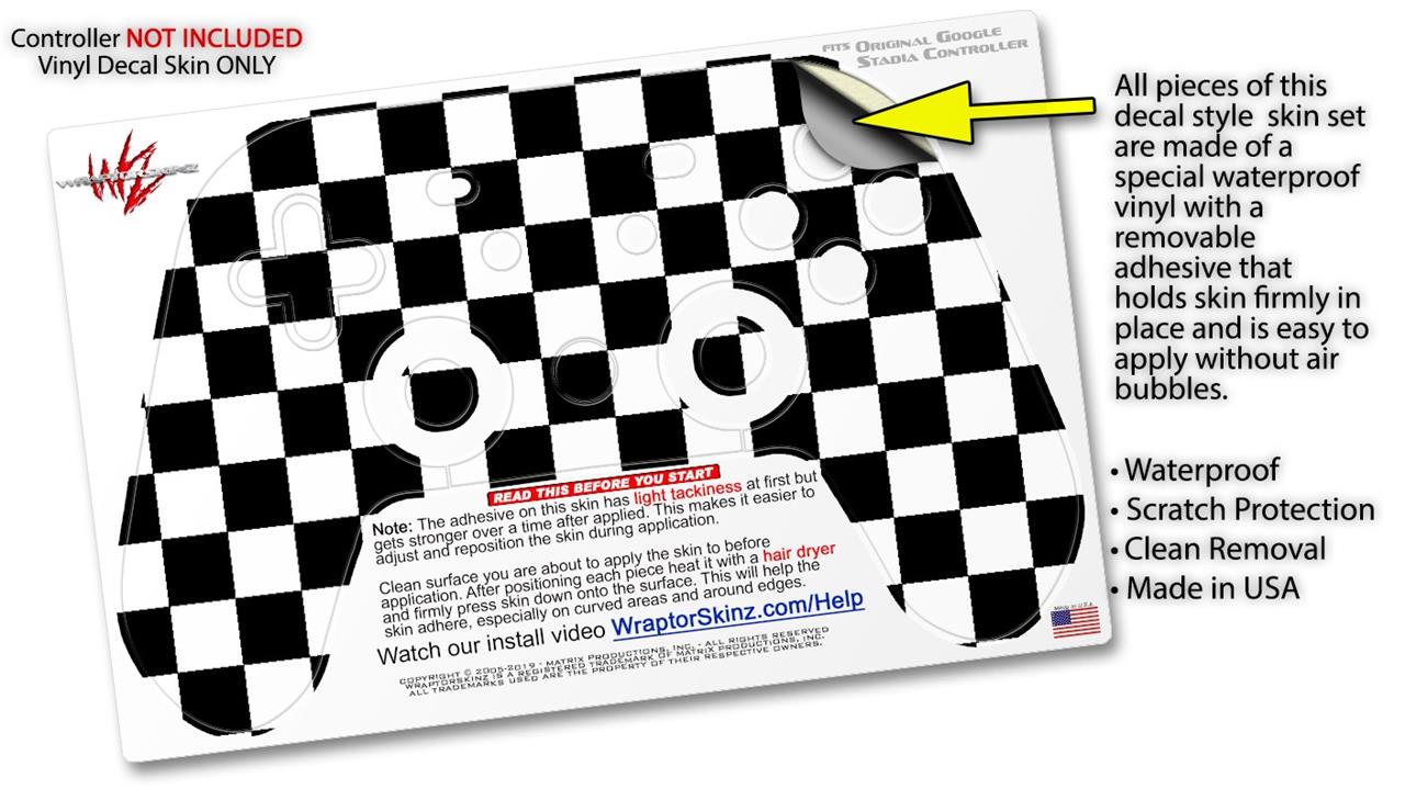 Skin Decal Wrap works with Original Google Stadia Controller Checkers White Skin Only CONTROLLER NOT INCLUDED