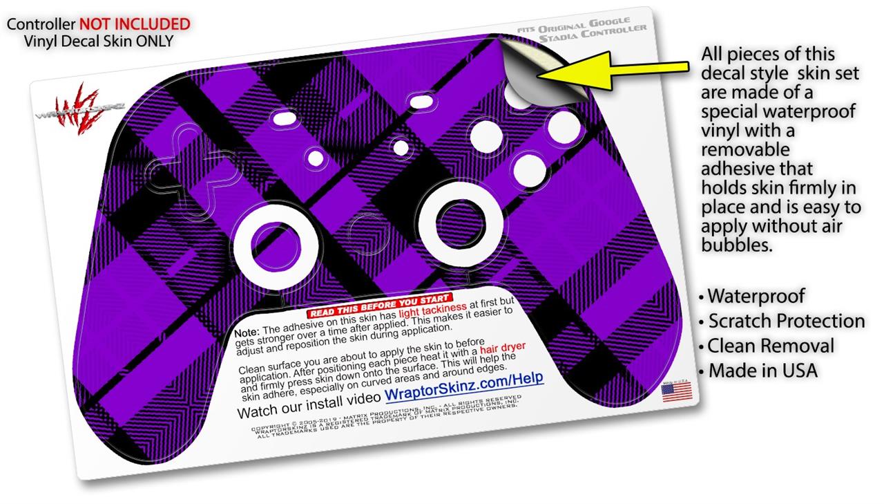 Skin Decal Wrap works with Original Google Stadia Controller Purple Plaid Skin Only CONTROLLER NOT INCLUDED