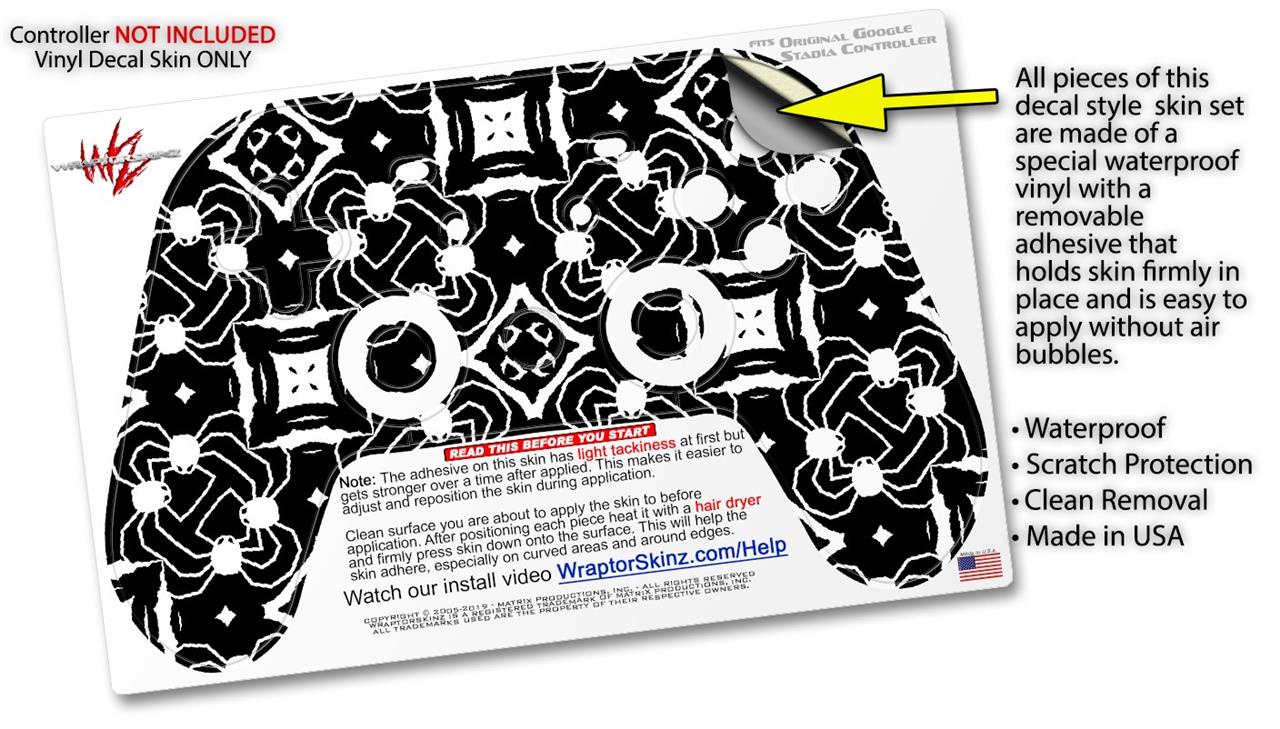 This product is in no way affiliated with or endorsed by Google. WraptorSkinz® skin wraps work with the Original Google Stadia version 1 Controller. Printed using superb photo quality designs and vibrant colors printed with special fade resistant inks that last even in direct sun for years. WraptorSkinz are a composite of two layers of commercial grade materials. The bottom layer is a soft, flexible vinyl with a special removable adhesive that is easily positioned, applied without air bubbles. Next, we print the bottom layer with UV protected, fade resistant inks that deliver superb photo quality designs in vibrant colors. Finally, we bond a professional grade laminate over the entire skin adding a glossy protective finish.