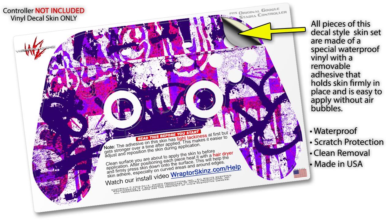 Skin Decal Wrap works with Original Google Stadia Controller Purple Checker Graffiti Skin Only CONTROLLER NOT INCLUDED