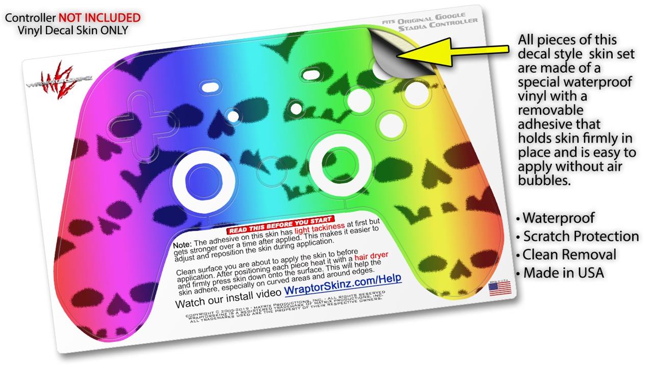 Skin Decal Wrap works with Original Google Stadia Controller Rainbow Skull Collection Skin Only CONTROLLER NOT INCLUDED