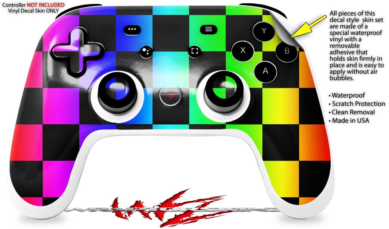 Skin Decal Wrap works with Original Google Stadia Controller Rainbow Checkerboard Skin Only CONTROLLER NOT INCLUDED