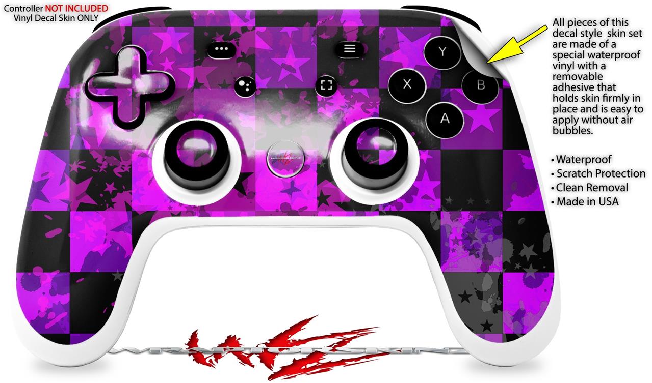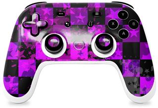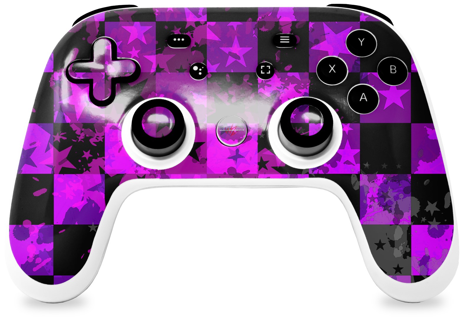 Skin Decal Wrap works with Original Google Stadia Controller Purple Star Checkerboard Skin Only CONTROLLER NOT INCLUDED