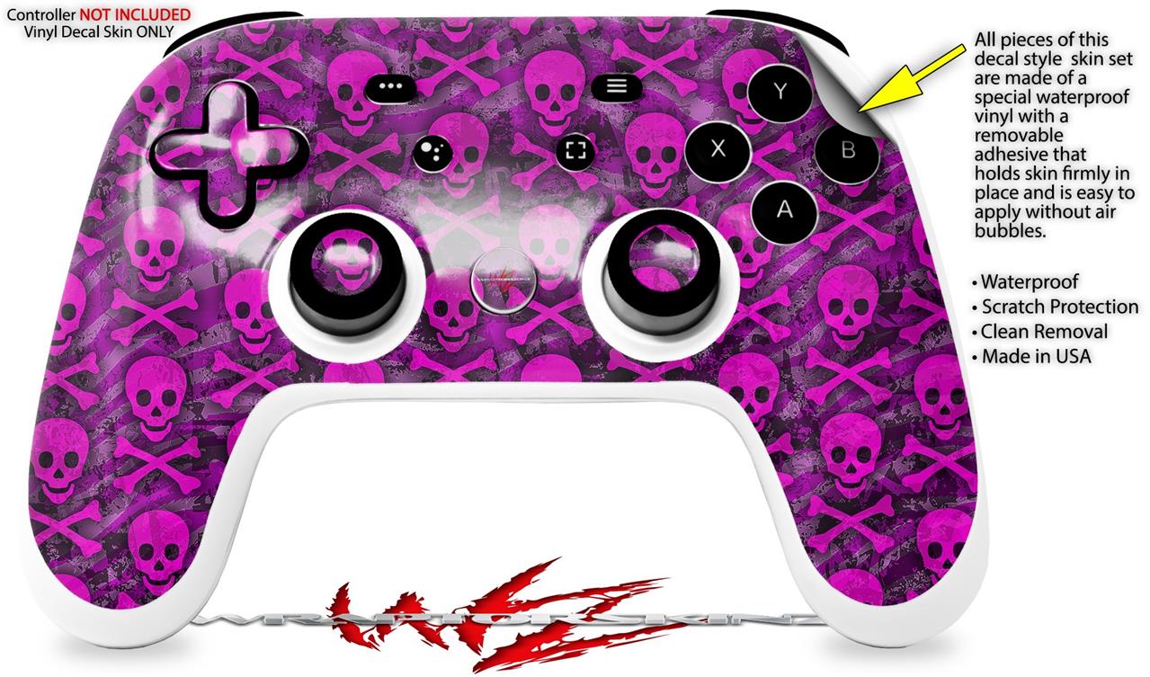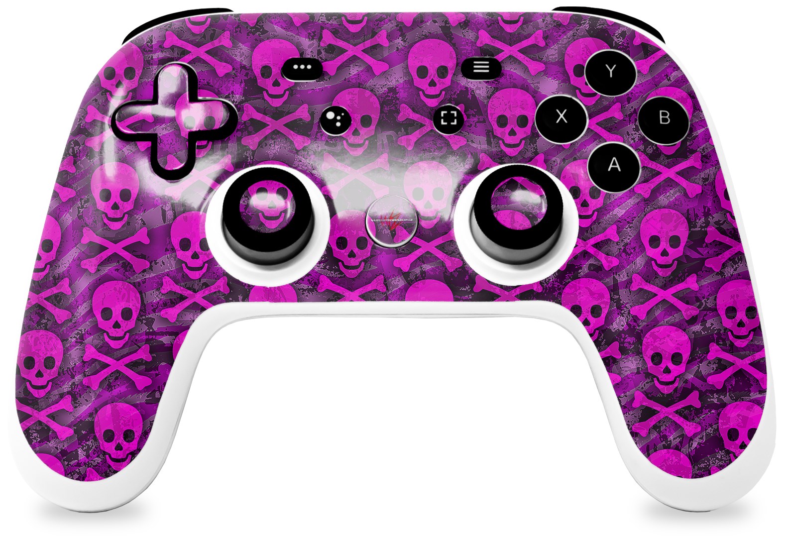 Skin Decal Wrap works with Original Google Stadia Controller Pink Skull Bones Skin Only CONTROLLER NOT INCLUDED