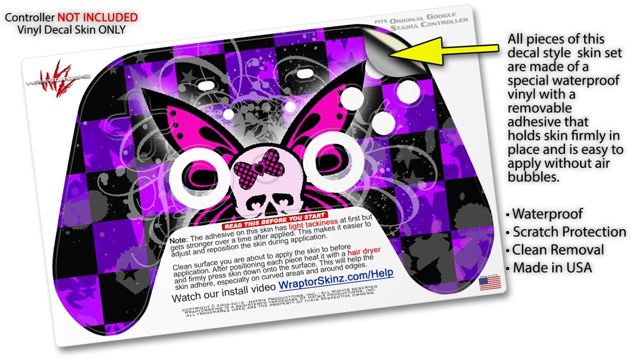 Skin Decal Wrap works with Original Google Stadia Controller Butterfly Skull Skin Only CONTROLLER NOT INCLUDED
