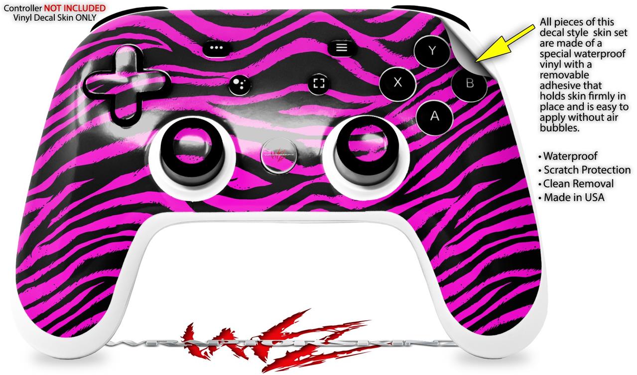 Skin Decal Wrap works with Original Google Stadia Controller Pink Zebra Skin Only CONTROLLER NOT INCLUDED